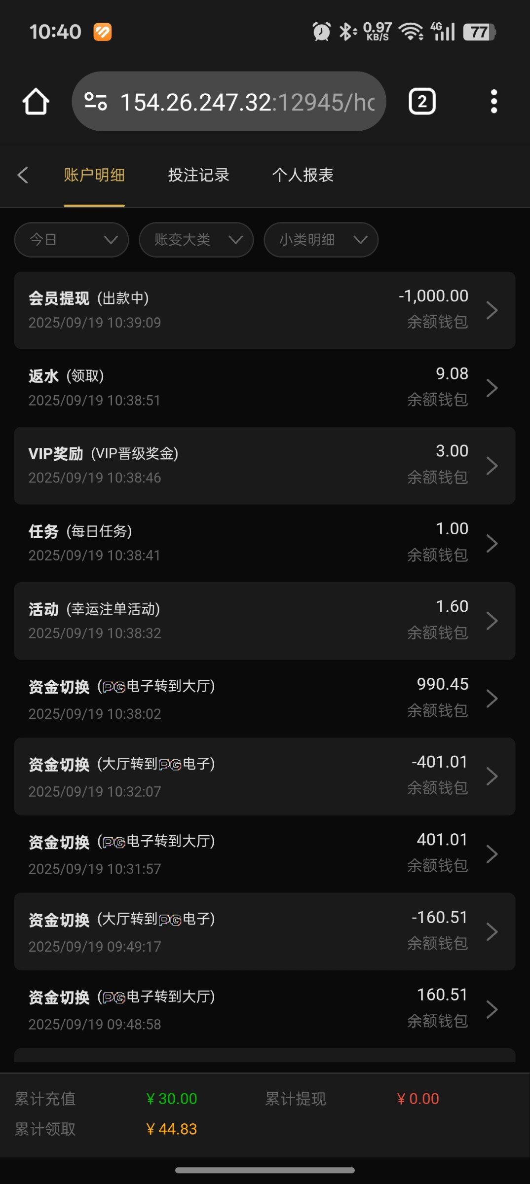 li1287676 30+30出了1000之后,就一直废掉了,跟假pg一样