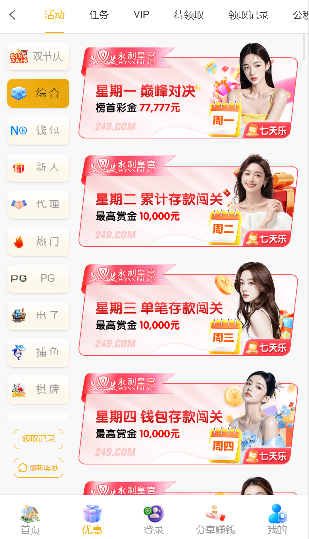 ✅【七天乐】每一天都有一个活动,最高领取10000元