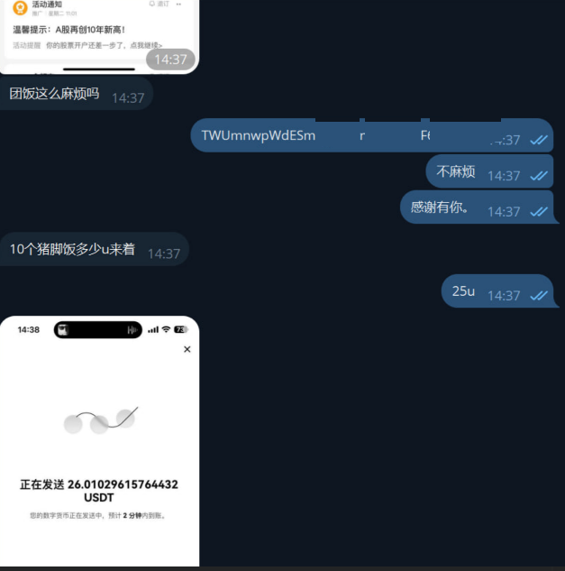 感谢这位无名兄弟,好起来的时候没有忘记兄弟们。团10个猪脚饭。
