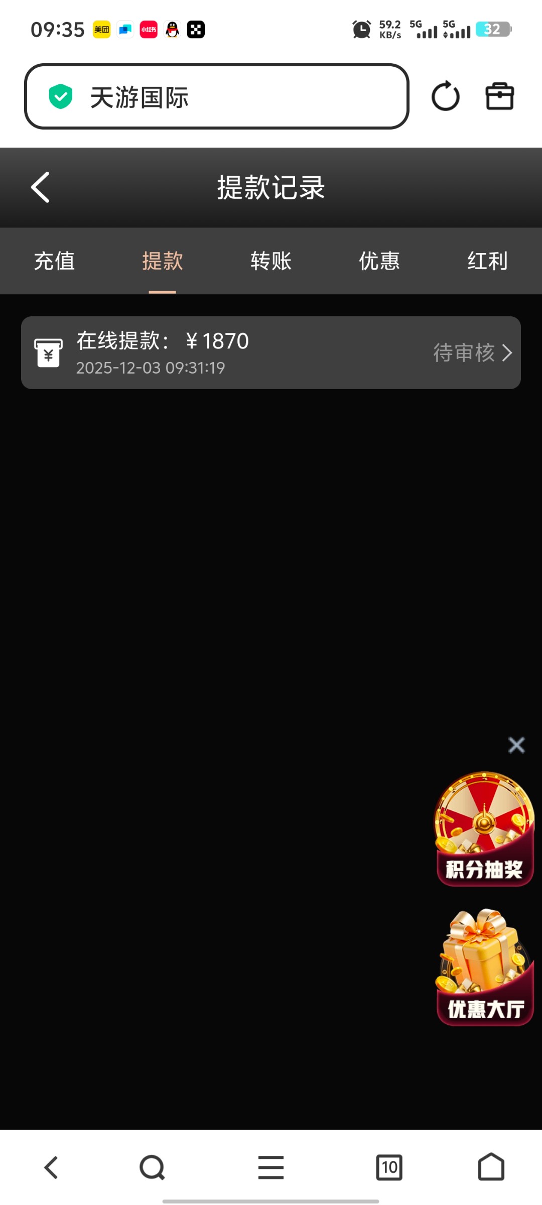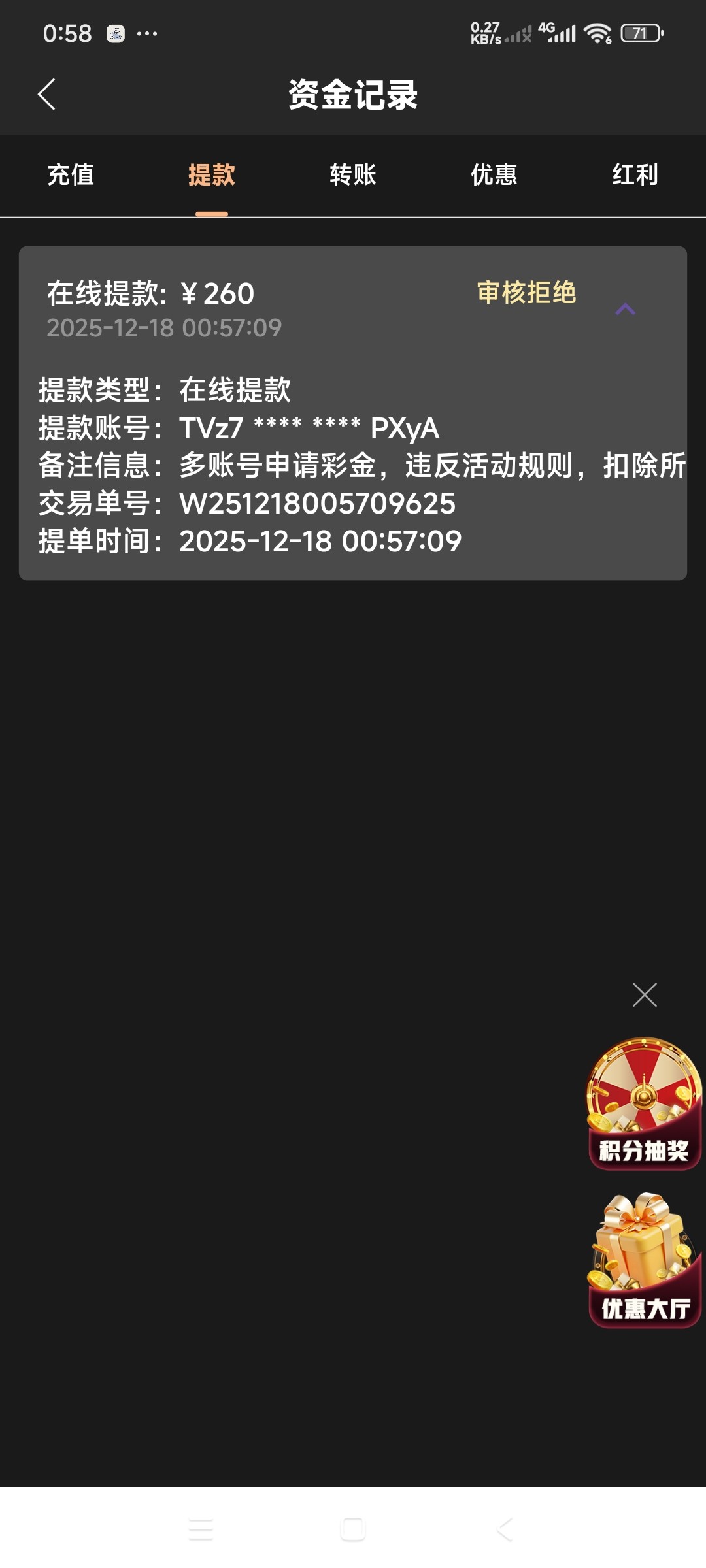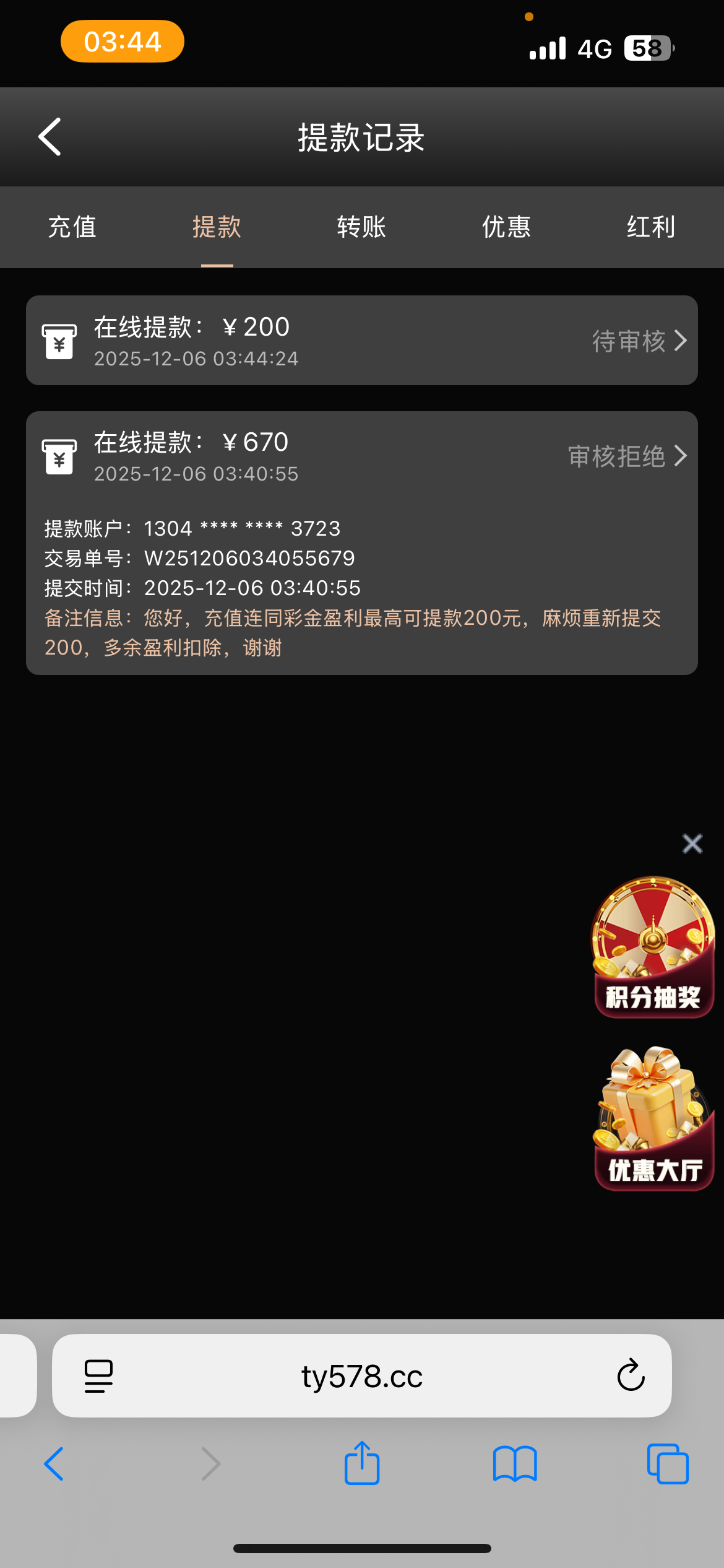 代码自助38元,8水,完成要求需要存款100(不可参与其他优惠),最多提款200元,具体规则自己看图。不喜欢可以不要。【代码可以先兑换,左上角点击彩金商场自助兑换】